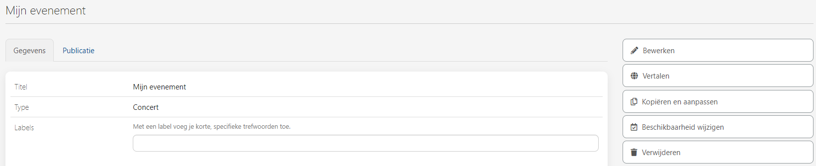 Op de detailpagina van jouw evenement vind je rechts de knop 'Kopiëren en aanpassen".