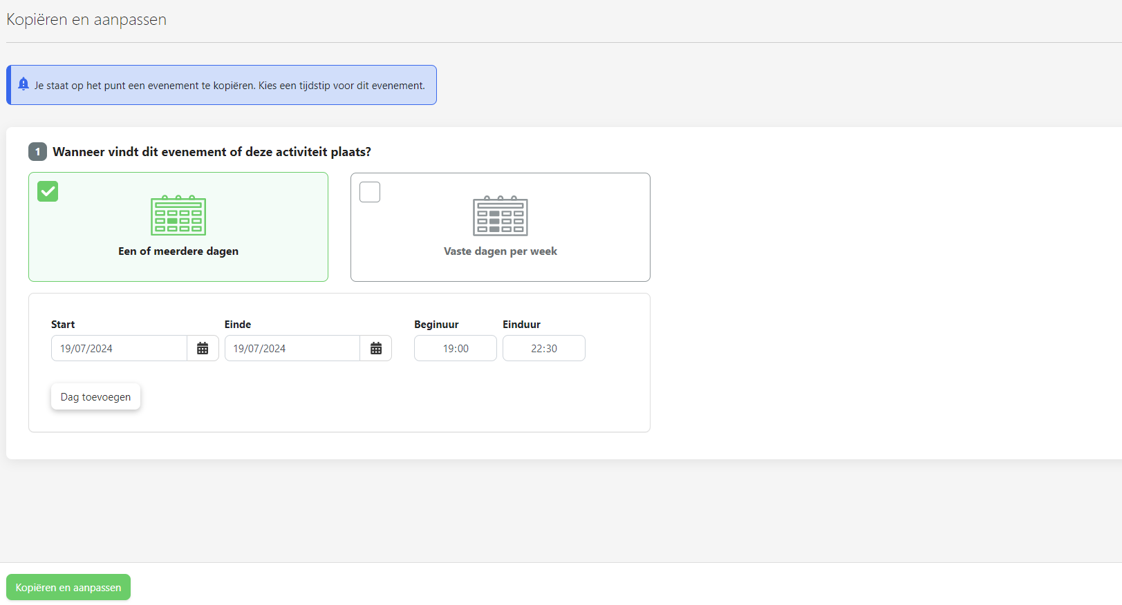 Vervolgens kan je via de groene knop "Kopiëren en aanpassen" de informatie aanpassen/aanvullen.
