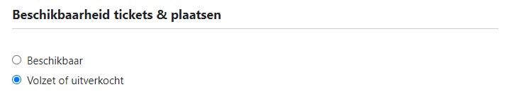 Vervolgens kan je aanduiden of er nog tickets en plaatsen beschikbaar zijn, of als het evenement volzet of uitverkocht is: